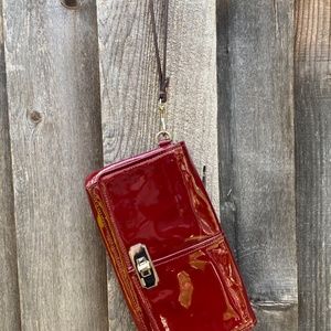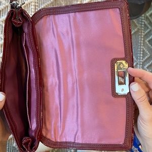 Beautiful burgundy patten leather clutch by Coach. Vintage perfect condition.