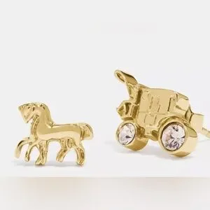 A whimsical way to wear Coach, this charmingly asymmetrical pair features the iconic horse and carriage that brands our leather goods in a design richly plated with precious metal and hand-set with sparkling crystals.