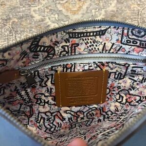 Coach X Keith Haring wristlet in in stylish blue pebble leather. Perfect for everyday use.