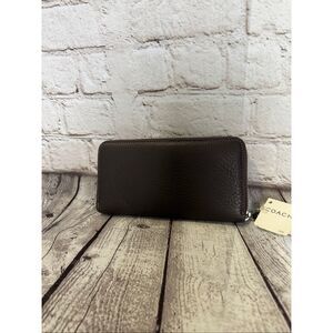 Deep chocolate brown pebbled leather vintage coach zippy wallet