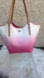 This stylish tote bag features a beautiful pink and white ombre design, perfect for adding a pop of color to any outfit. Its spacious interior makes it ideal for everyday use.