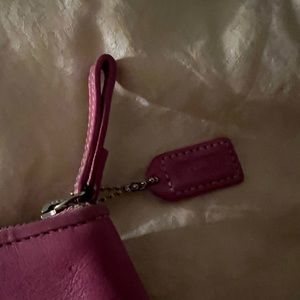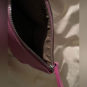 Coach pink leather make up bag with zip closure