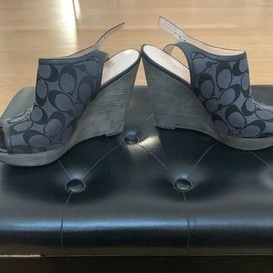 Black Coach platform, size 8b, worn , good condition. Heels 4.8” , upfront 1”