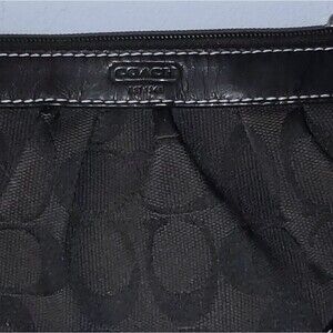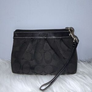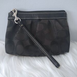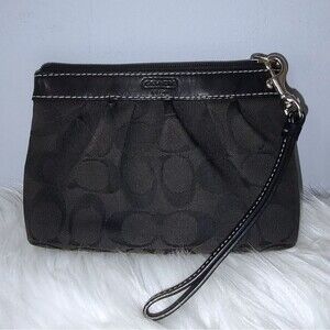 Gorgeous Coach pleated monogram jacuard wristlet with silver tone hardware and leather trim. No major callouts.