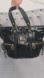 CALOUTs: does have some rubbing on the corners show in the picture. Stylish black leather tote bag with gold accents. Perfect for everyday use.
