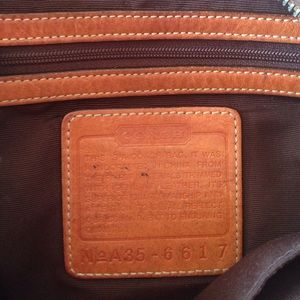 Tan coach purse, faded, but in good condition, pockets on the inside, no shoulder strap