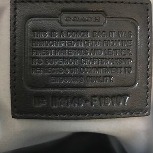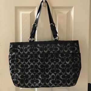 Black and silver coach purse. Silver lining inside with 2 open pockets and zipper pocket. Side and back pockets noted on outside. Great condition.