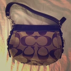 Coach signature bag. Light brown with darker brown leather. Barely used, great condition.