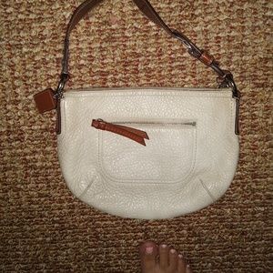 Used authentic coach purse. Outside leather no marks or stains. Inside lined with cloth is gently used. Has all coach tags