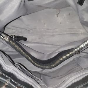 Black coach purse/tote. In great condition. No tears or color fading on the outside. Small stain(pictured) on the inside.