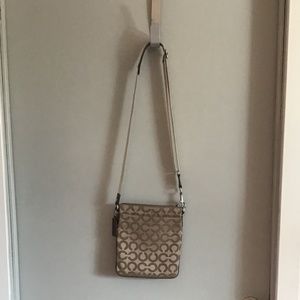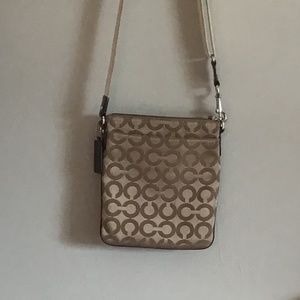 Small coach purse. Has been used (look at pics) zippers work. No holes or rips.