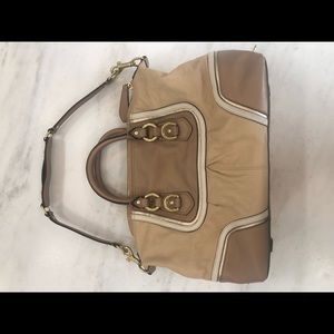 Coach purse , excellent used condition not holes, tears , or stains noted. Great gold and tan color.