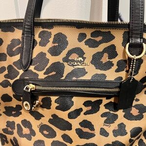 Has some slight wear on the strap but overall good condition! Leopard print. Fits on shoulders.