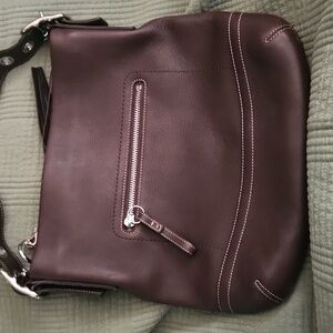 coach purse. purse is like new condition. no scratches or signs of wear. can be worn as a crossbody and or shoulder purse. strap is adjustable, exterior zipper pocket, inside slot pockets (2), interior zipper pocket, top of purse has a zipper closure with a dedatchable leather tassel. from a smoke free home