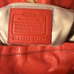 Beautiful coral all leather Coach bag. Has three separate compartments. Just a a very little wear on the bottom-in last picture. Not part of bundle. Make an offer!