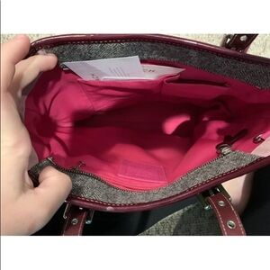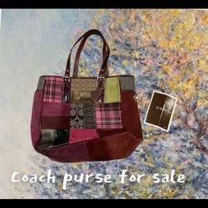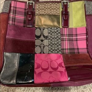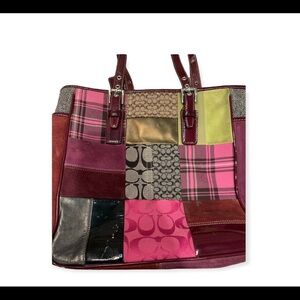 Coach bag with patchwork fabric leather straps and tag and nicely lined interior no stains, no rips, gentle wear.