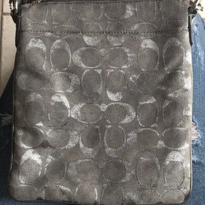 2 used coach purses. One is slightly used and is a cross body silver small bag, second one is well used cream and brown shoulder bag (this one could use some cleaning)
