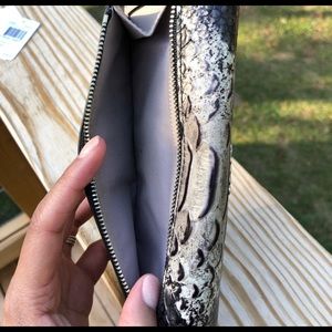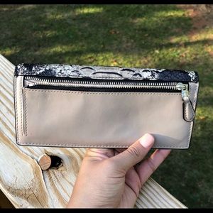 Soft leather Coach slim envelope wallet. Silver tone hardware, python and grey birch color. In great condition. Purchased from fellow posher and never used. Small mark not noticeable. I have large matching bag available