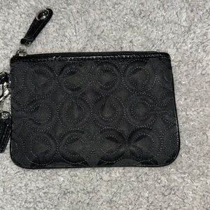 Coach quilted black wristlet with bag charm!