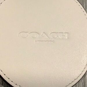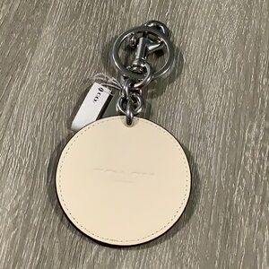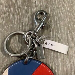 Vibrant Coach keychain with a beach ball design. Features red, blue, and white sections. Perfect for adding a playful touch to your keys, purse or bag! Leather with brushed silver hardware. Embossed with the coach logo on the back. New with tags!