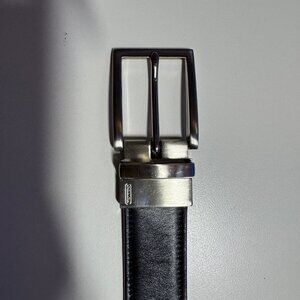 This is a used Coach reversible Black and Brown belt. It is stamped as 34 inches long and has a few marks from wear that are shown in the pictures. It measures end to and around 42 and 3/4 inches long.