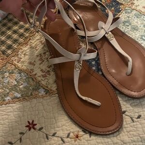 Coach white sandals with gold tassel well loved but plenty of wire left in them