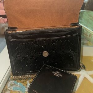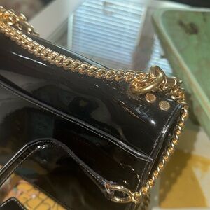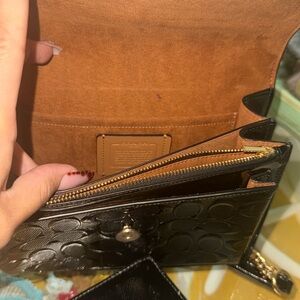 Elegant Coach women's bag in sleek black with gold accents. Perfect for any occasion.