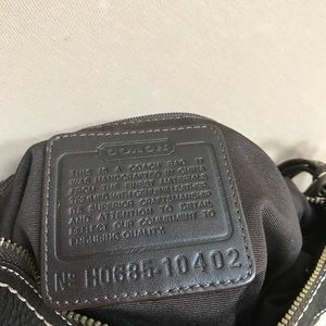 Authentic coach signature brown shoulder bag. New without tags excellent condition. One exterior zip pocket, one interior zip pocket, two interior slip pockets.