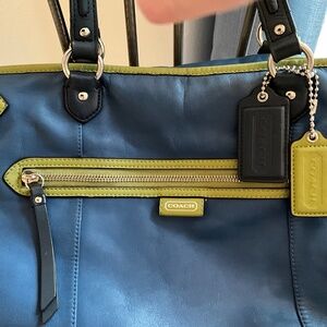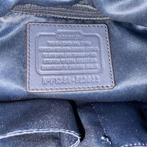 This is a coach shoulder bag that is still in great shape. Still has lots of use left. Soft to feel. Plenty of room for anything you want to take with you. Slight amount of wear at the top of the back pocket, which I tried to take a picture of. Slight rubs on corner bottom which I tried to take a pictures of . Double coach tags. I believe this bag was called a daisy spectator Emma. Keep in mind the hangtags are worth quite a bit too.