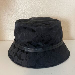 Coach signature C Jacard bucket hat with leather trim small. NWT