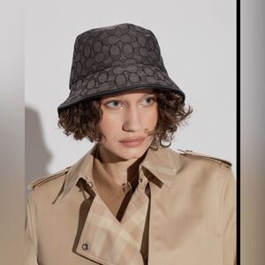 Fun ways to style this classic bucket hat! Canvas in black Coach logo and black leather buckle trim. Stock photos show fun ways to style. Excellent condition no call outs. Questions? Leave a comment below!
