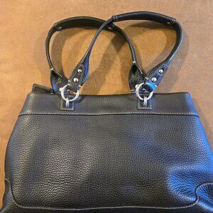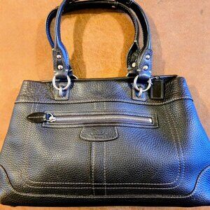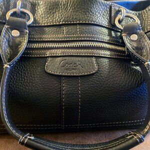 Coach H0982-14425 pebbled leather satchel bag with outside zippered pocket and multiple inside compartments. Some wear on corner and bottom but otherwise very good used condition.