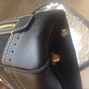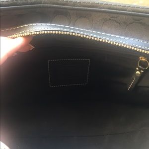 Coach Signature Satchel with black leather accents and white thread. Approx size: 14" length, 8" height, 4" width. 8.5" handle drop. See last 2 pics- minimal wear to leather corner sides