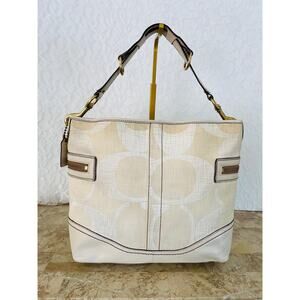 Coach signature linen - LEather tote shoulder bag SHoulder BAg 7473