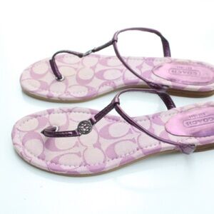 Patent leather-thong style .Jacquard fabric signature Coach logo insole