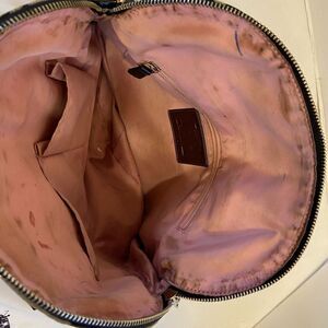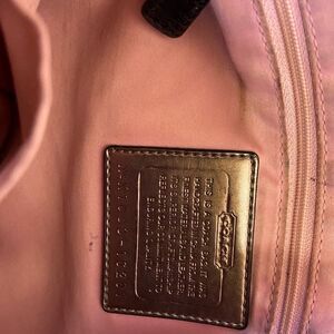 Coach signature zipper tote. Black and gray. Measures 15”x13”. 7” strap. No duster bag. Just tote. This bag has pen marks inside. Light pink interior. K1093-16291
