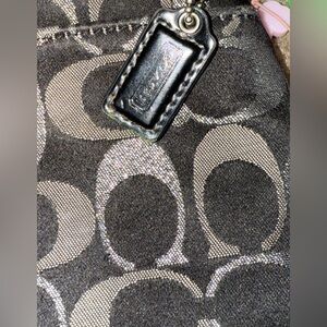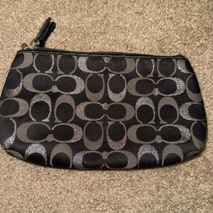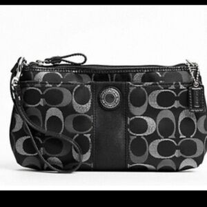 Coach signature stripe 3 color metallic signature large logo wristlet black