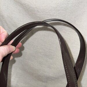 The interior is lined with a soft fabric material that protects your belongings from scratches and dirt. The bag features silver hardware that complements the brown exterior, adding a touch of glamour to your overall look. This Coach tote bag is perfect for women who want to look stylish and organized.