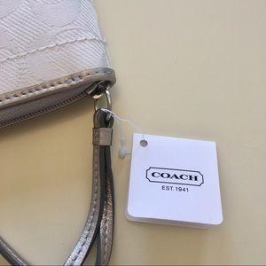 Brand new, with tags Coach signature white wallet/wristlet. Has zipper coin pouch, card holders, and a place for cash. The whole thing zips close and has a wrist band attached. Classic C logo