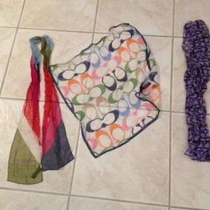 Coach silk scarves. $25piece. Purchased new for $68 each and only used a couple of times if at all. I'm willing to take offers on these 😊 Only the purple one is still available.