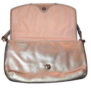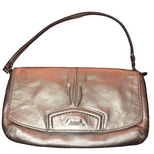 Coach silver metallic genuine leather large wristlet or clutch 9” long …