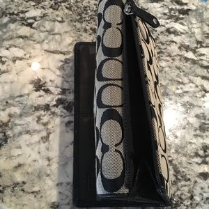 New with tags!..Item: F48981...Color: SV/Black White/Black...signature fabrics with patent leather trim... credit card and multifunction pockets...two full length bill compartments...outside zip pocket for change...front "C's" snap closure... approximately 7.5" L & 3.75" H.. guaranteed 100% authentic!!..Open to reasonable offers!!