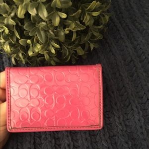This is 100 percent authentic Coach wallet. Lightly used, I recently upgraded which is why I am selling this. The color of this wallet is a mixture between pink and purple. This is perfect to throw in the back of your pant pocket or throw in a clutch to make sure your cards are together, or even a gym bag.