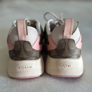 Coach C275 Tech Runner sneakers. Pink, brown and cream.