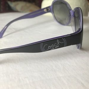 Great condition authentic high end coach sunglasses elegant purple color inside and black outside one tiny scratch that I couldn't get with my camera but it's definitely not effecting the vision at all. Barely used maybe 3 times. Comes with original case and a cloth. Reasonable offer will be considered