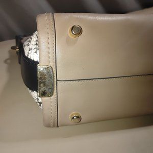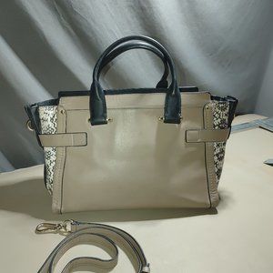 Coach swagger Leather Snake Print Satchel Handbag Adjustable Strap Beige Black