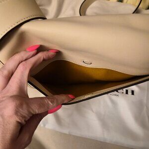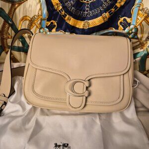 GORGEOUS cream color glovetanned leather Coach messenger size 26 bag. Never used it. Missing the hang tag. Check photo for the dimensions please. OFFERS WELCOME!