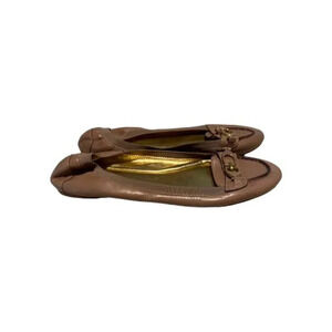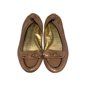 Coach Tan Leather Flats with Bronze Gold Hardware