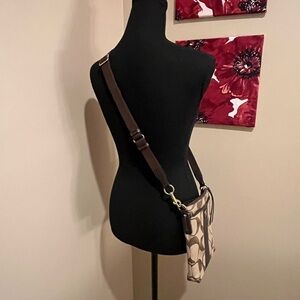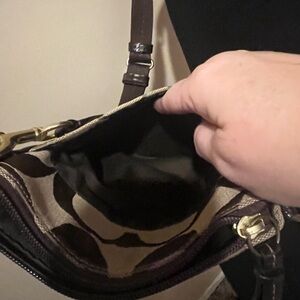 Two slip in pockets on outside (front and back), interior is one large zippered compartment.