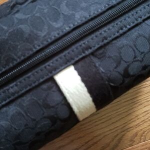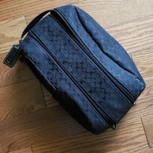 Coach toiletry bag. Beautiful craftsmanship black "C" material. Two zip compartments. Can be used for other items like markers, or any crafts.